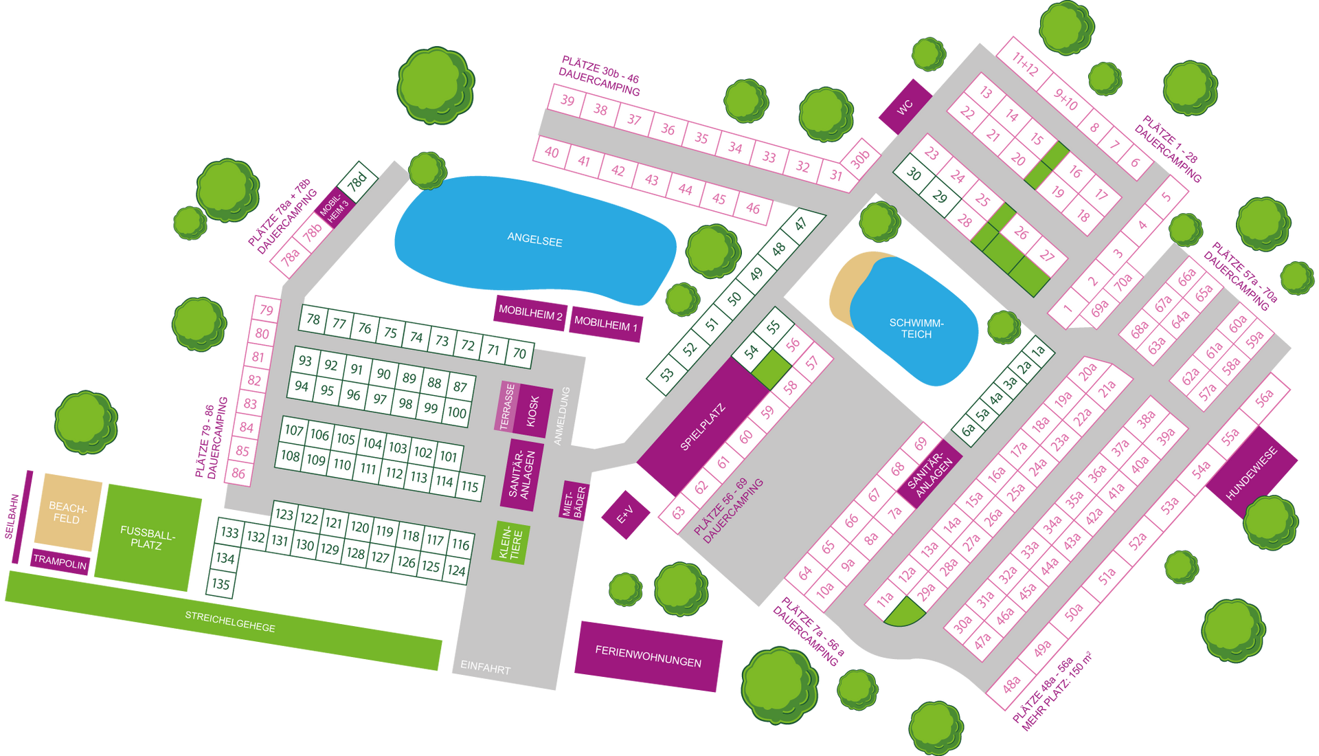 Auf der detaillierten Übersichtskarte findet ihr unsere Stellplätze für Wohnwagen, Wohnmobile und Zelte. Nennt uns einfach euren Wunschplatz (Nummer) für euren nächsten Urlaub. Ihr könnt euch die Übersicht auch downloaden, damit ihr optimal auf euren Campingurlaub vorbereitet seid.